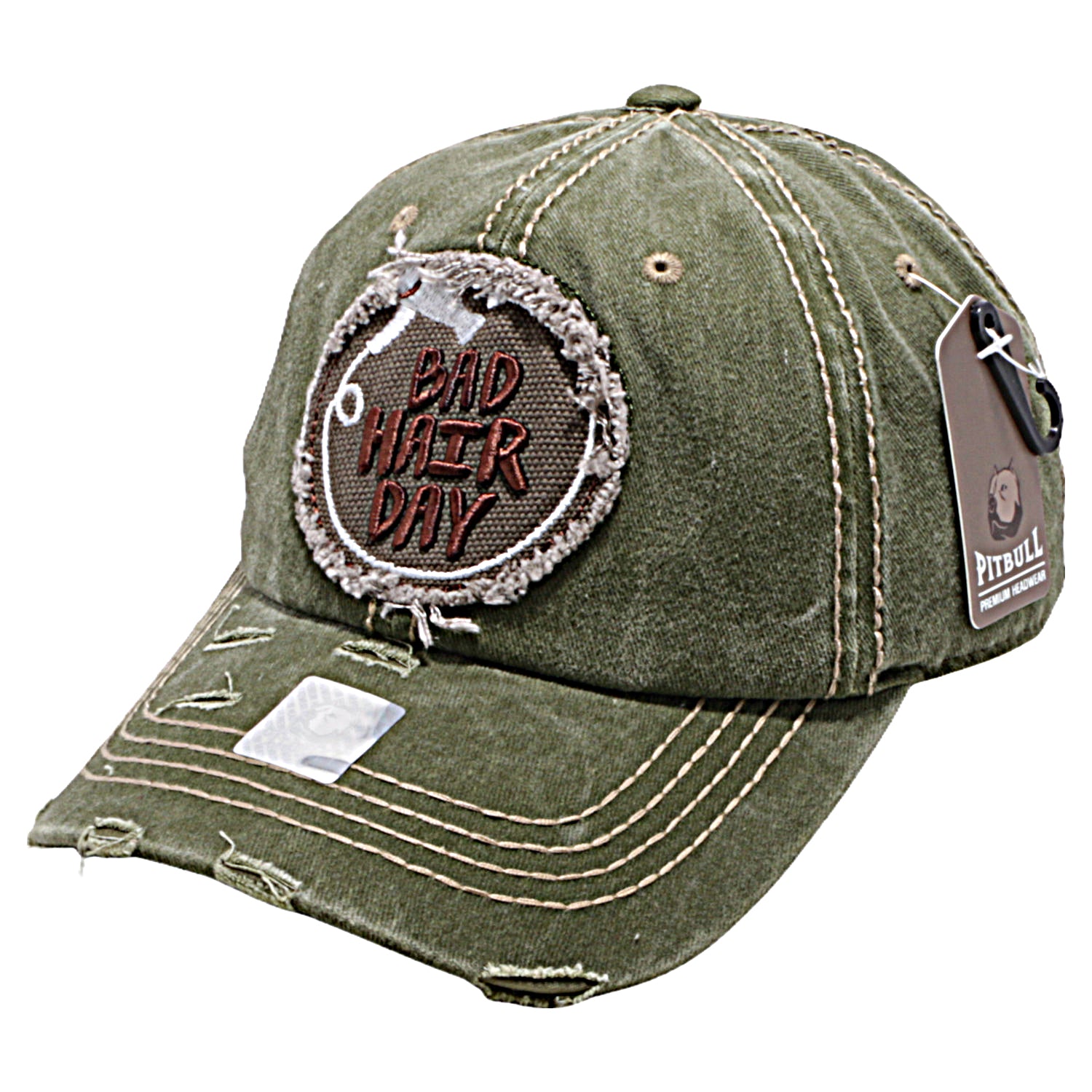 Pit Bull Tie Dye Designed Bad Hair Day Patch Vintage Hat [Olive]