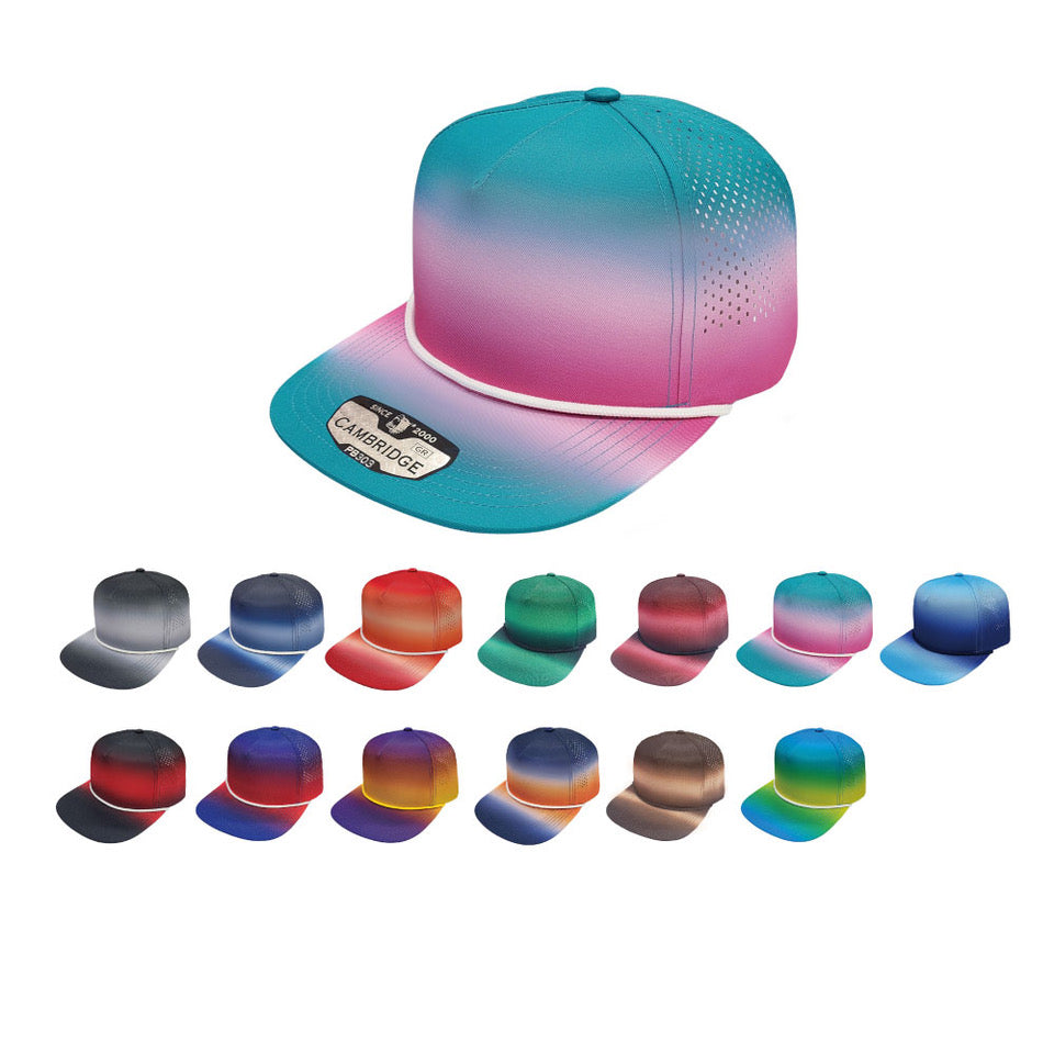 The PB400 5 Panel Gradation Perforated Rope Hat features a range of saturated colors with a perforated meshback.