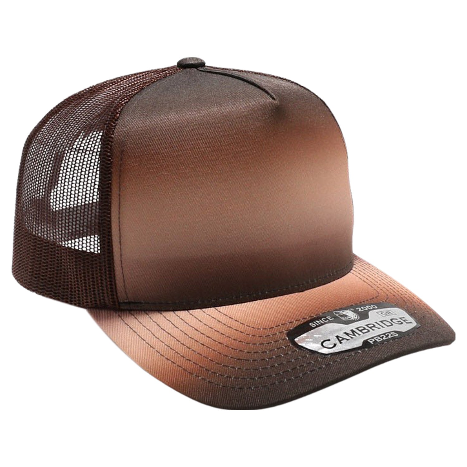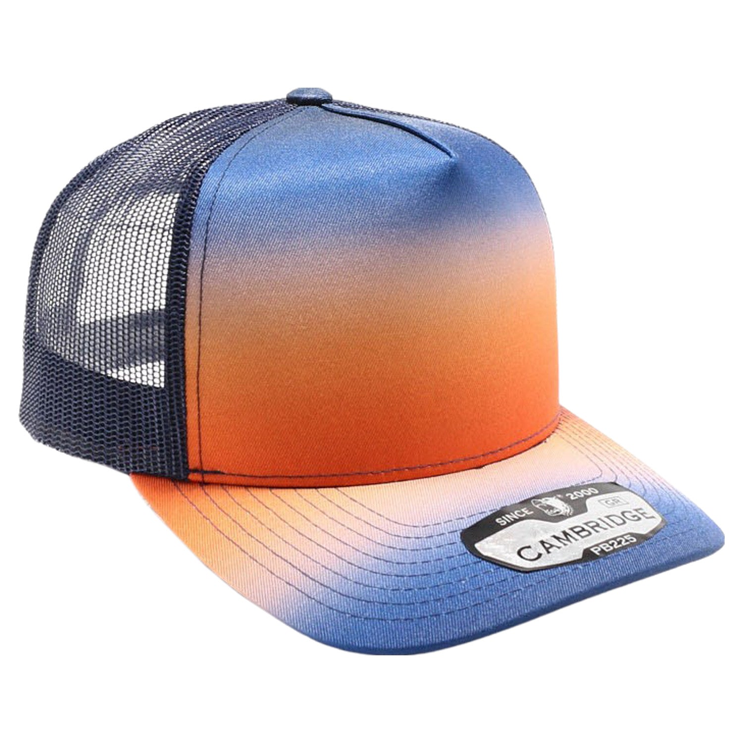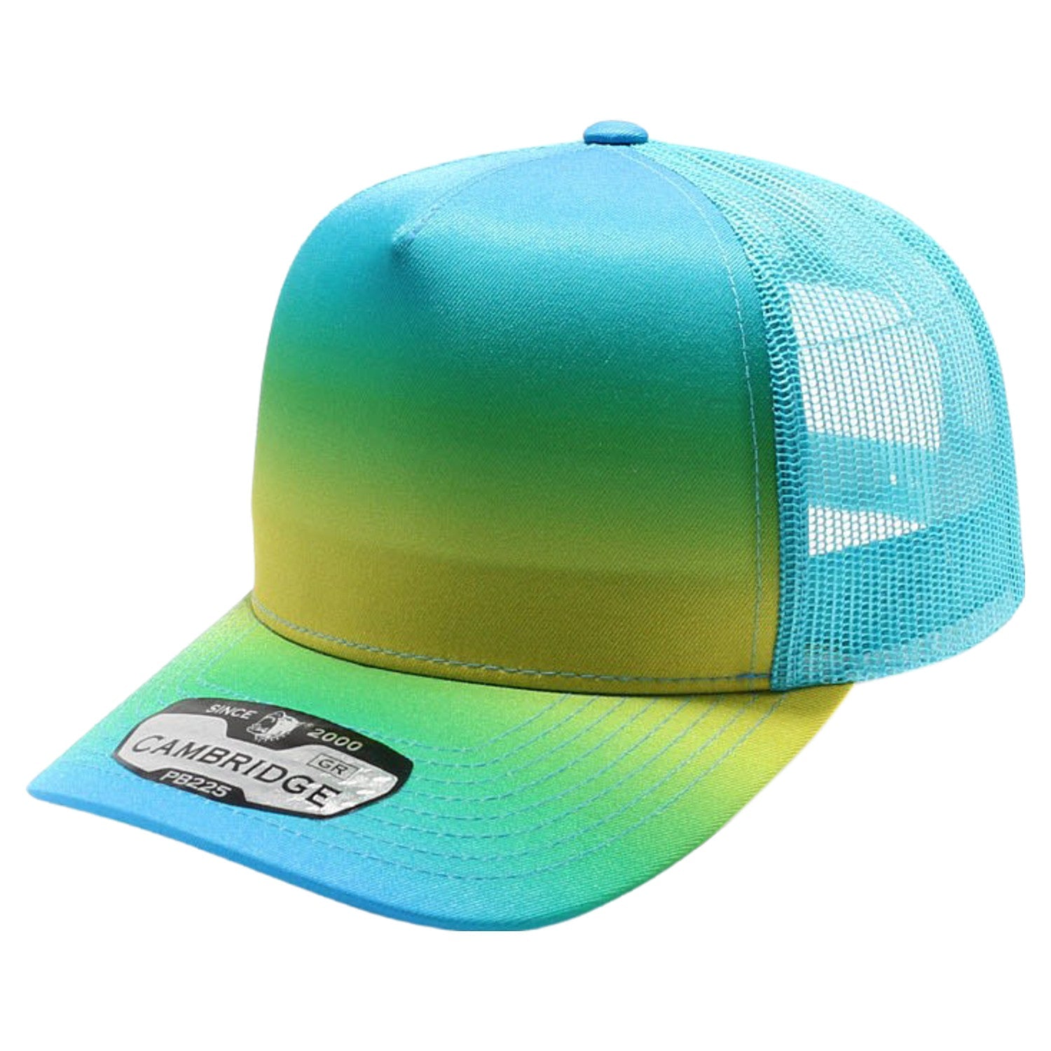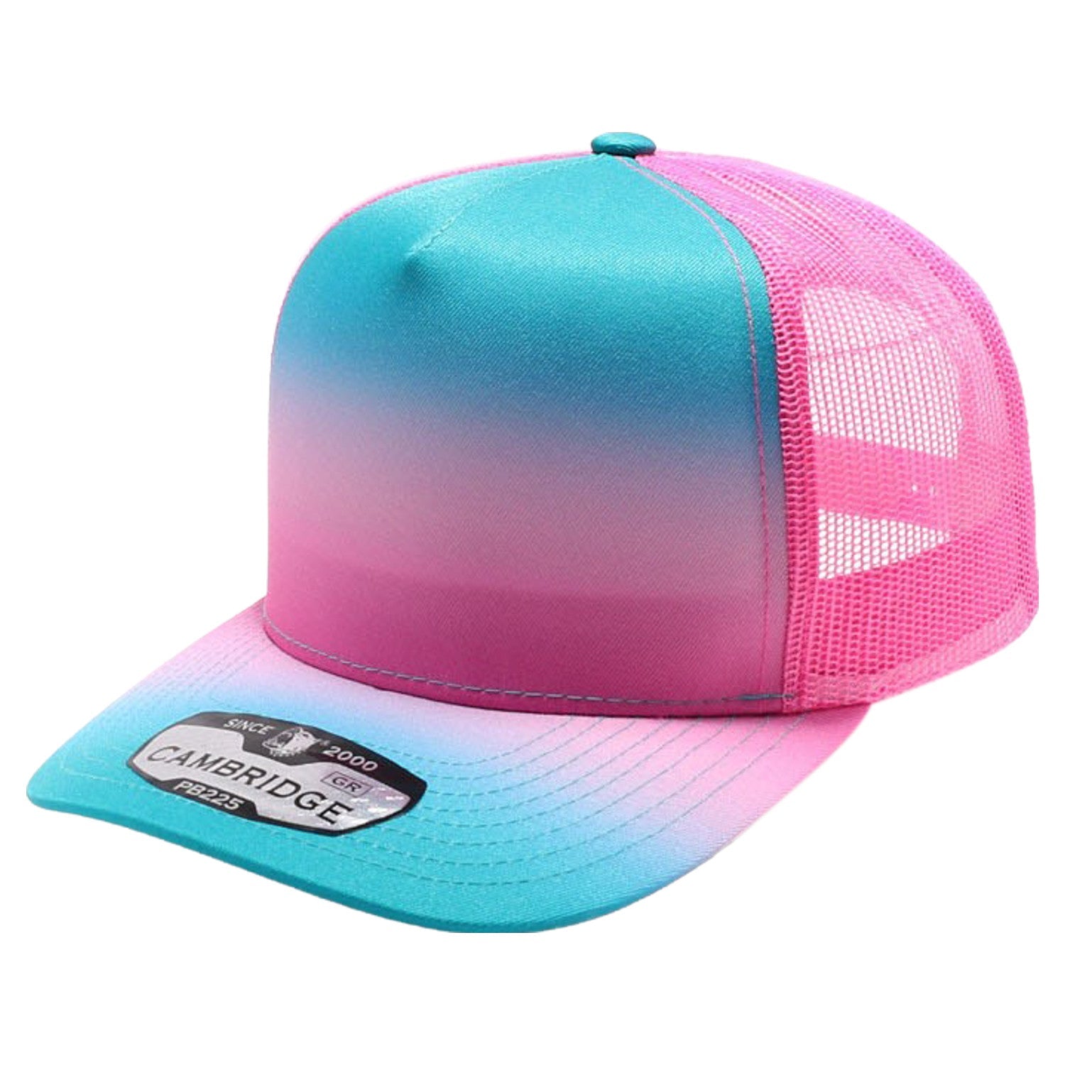 The PB400M-NR 5 Panel Gradation Trucker No Rope Hat features a stylish design and mesh-back for added breathability. With its standout look, this hat is a distinctive piece that sets you apart.