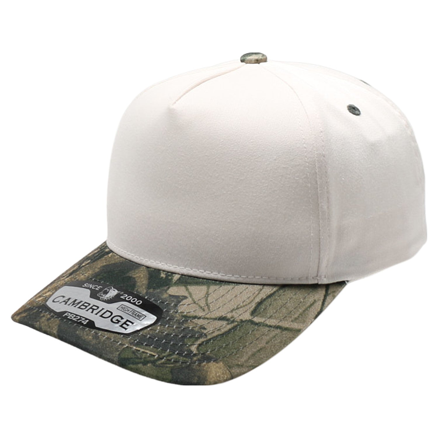 The PB274C Five Panel High Frame Camo hat features a plain hat with camo colored visor. This hat is great for promotional and casual wear. Safe for customization like logo or patches.