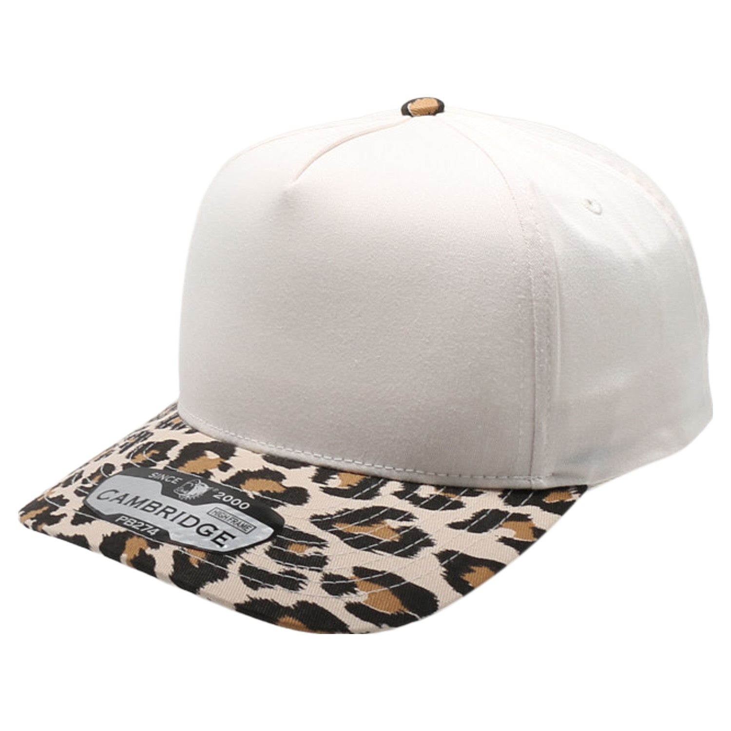 The PB274L Five Panel High Frame Leopard hat features a plain hat with leopard pattern visor. This hat is great for promotional and casual wear. Safe for customization like logo or patches.