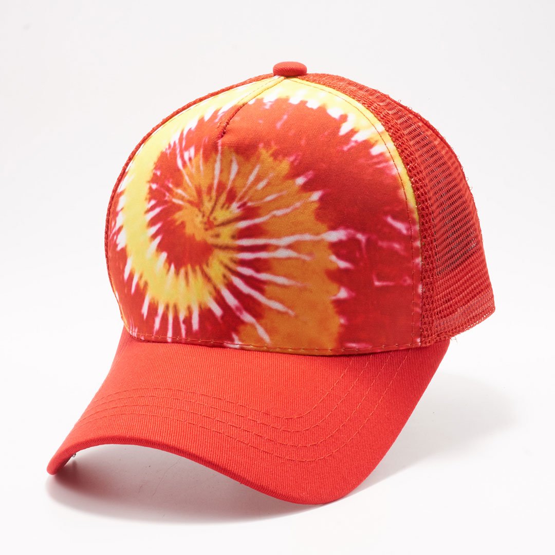 PB236 Tie Dye Curved Visor Trucker [Red/Yellow]