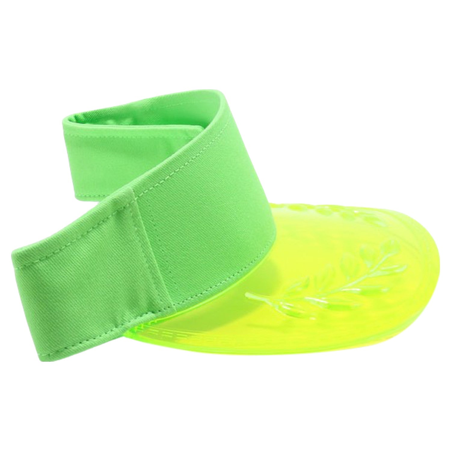 The TRN12 Transparent Bay Leaf Sun Visor is a stylish and functional accessory designed for fashion. It adds a touch of uniqueness to any outfit.