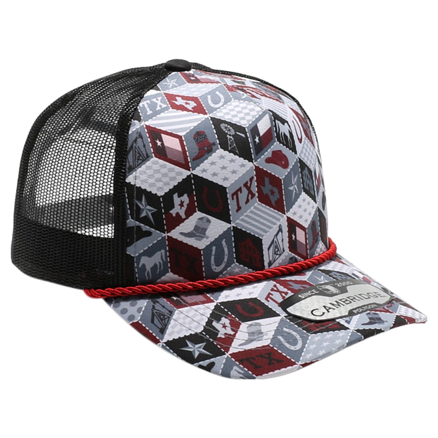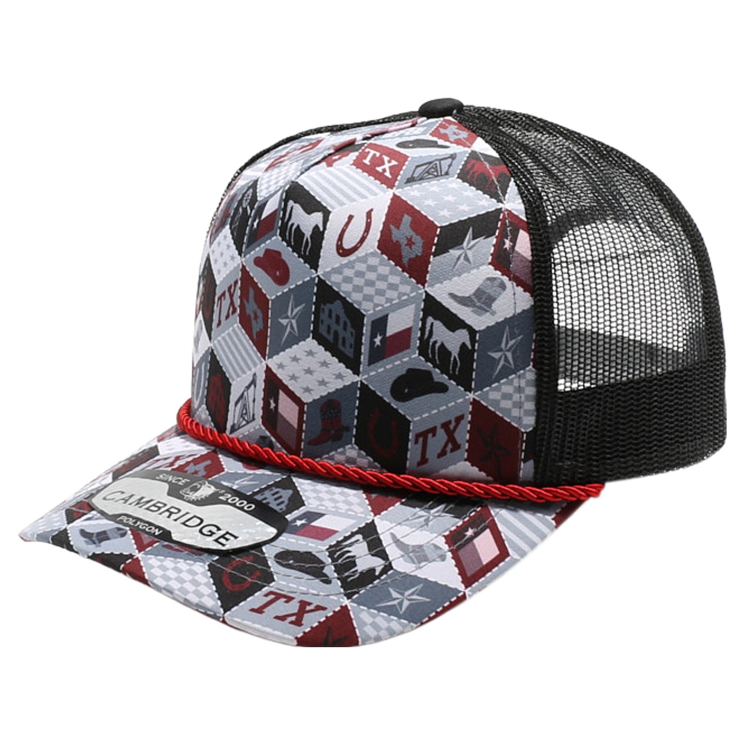 Texas-Themed Polygon Quilt High Frame with Rope [Burgundy]